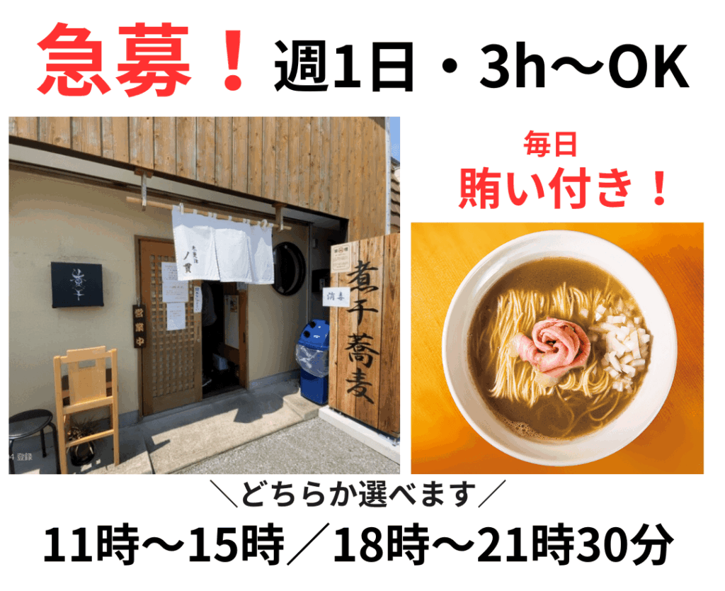 行列ができることでも知られる、煮干し蕎麦の人気店「木更津丿貫」。今回、日中働ける主婦の方、週1日から働きたい副業・Wワークの方を中心に新しい仲間を募集します。短…