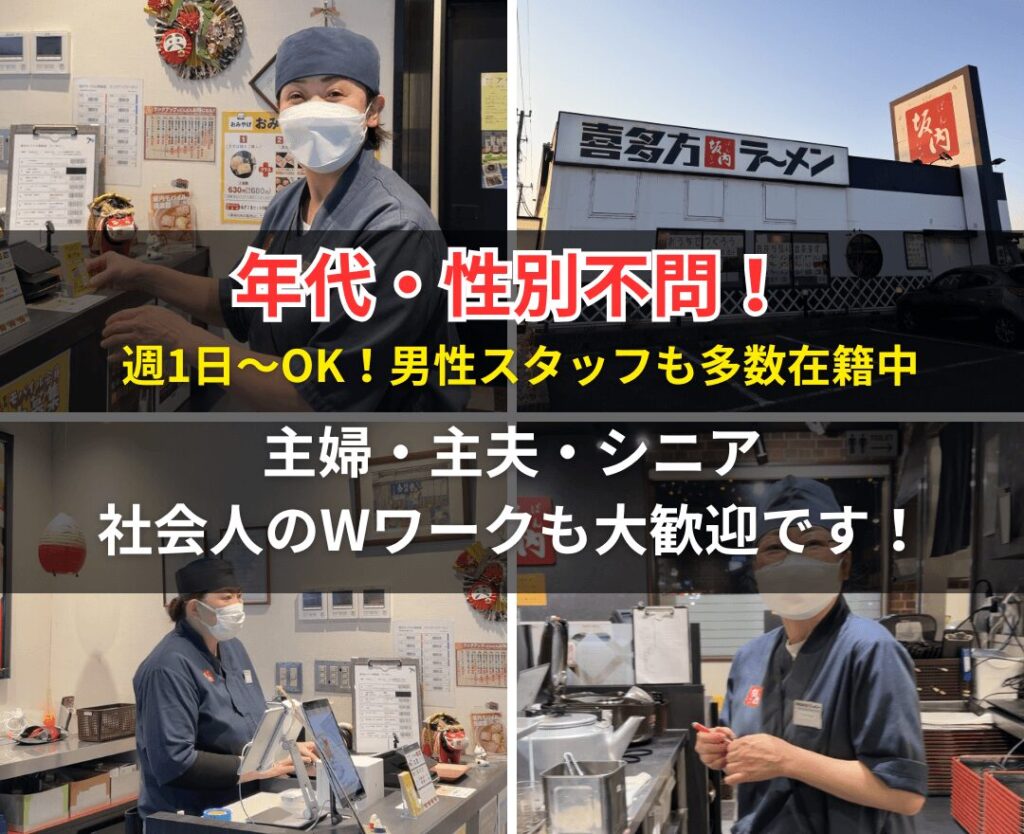 全国にファンの多い《喜多方ラーメン坂内》でパートスタッフ募集!木更津店は60代まで幅広い年代が活躍中✨男性スタッフも多数勤務中です。土日の週1日どちらかだけ…