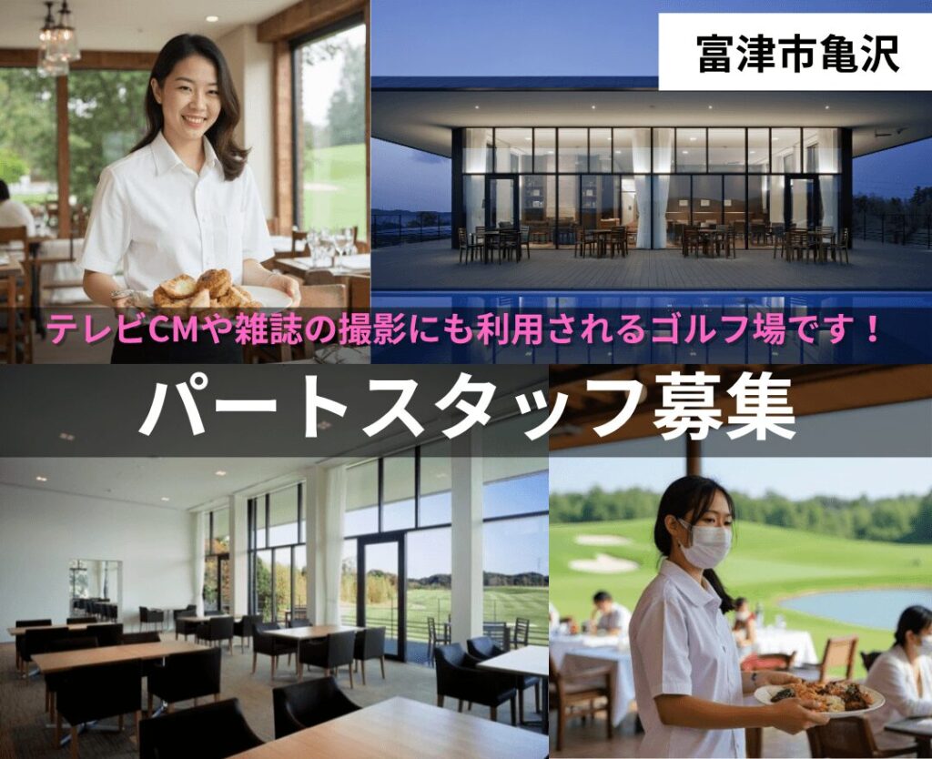 緑豊かなゴルフ場の中にある、落ち着いた雰囲気のレストランで**ホールスタッフ(配膳・接客)**を募集しています。30~50代の主婦さんが中心に活躍中です。日中時間帯で…