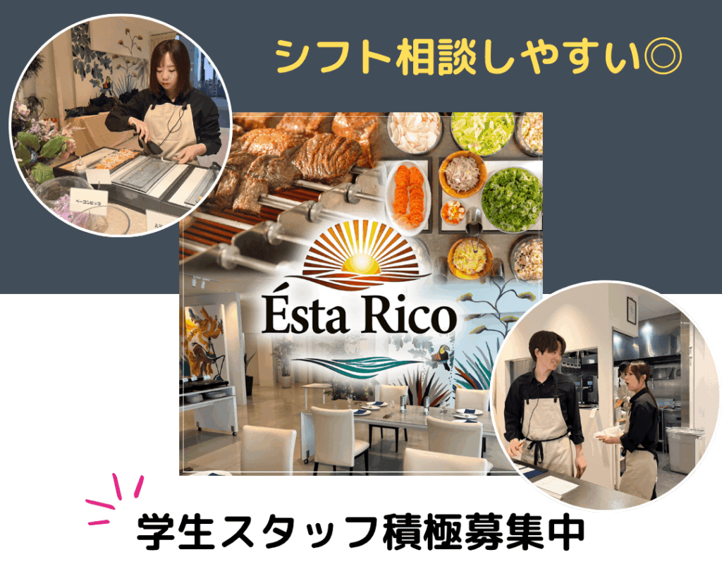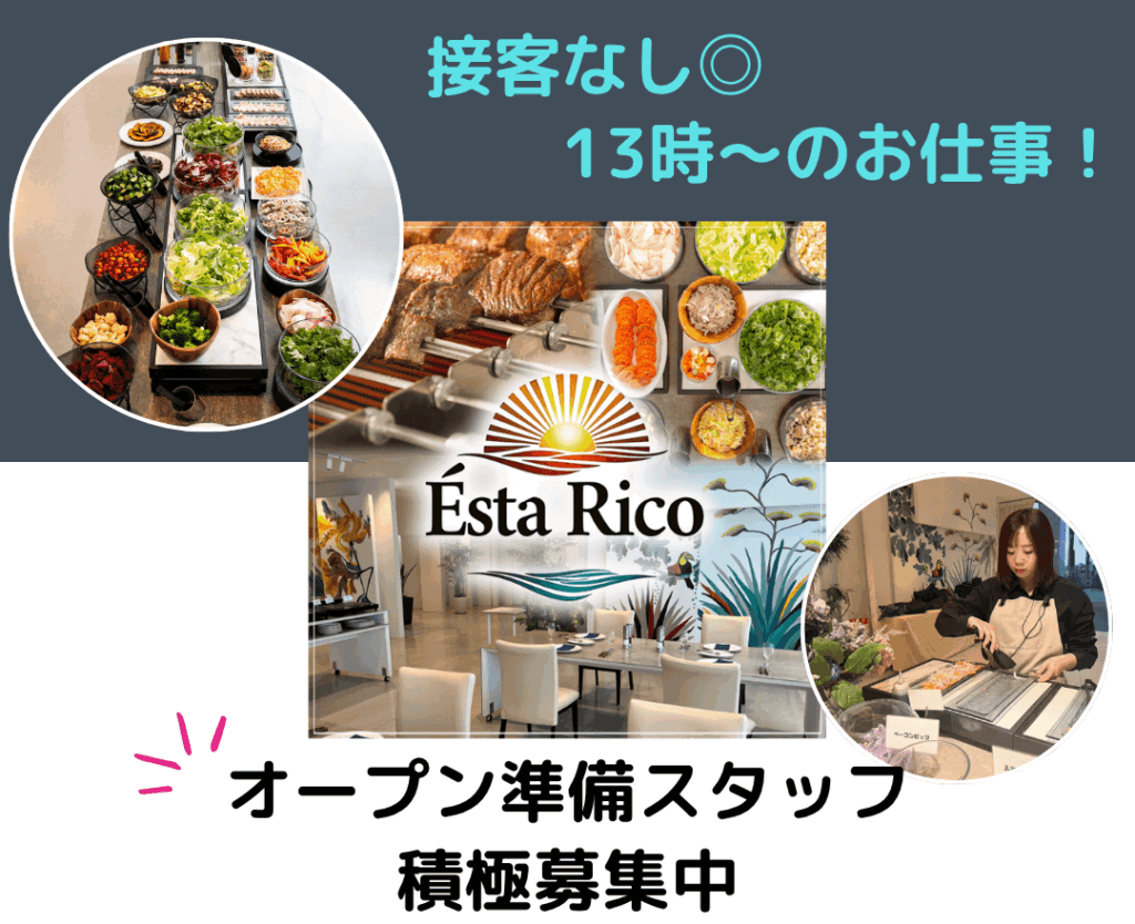 16時・17時から働ける高校生~大学生歓迎🍴🍖海が見えるレストランのホール・キッチンスタッフ募集『Esta Rico(エスタリコ)』