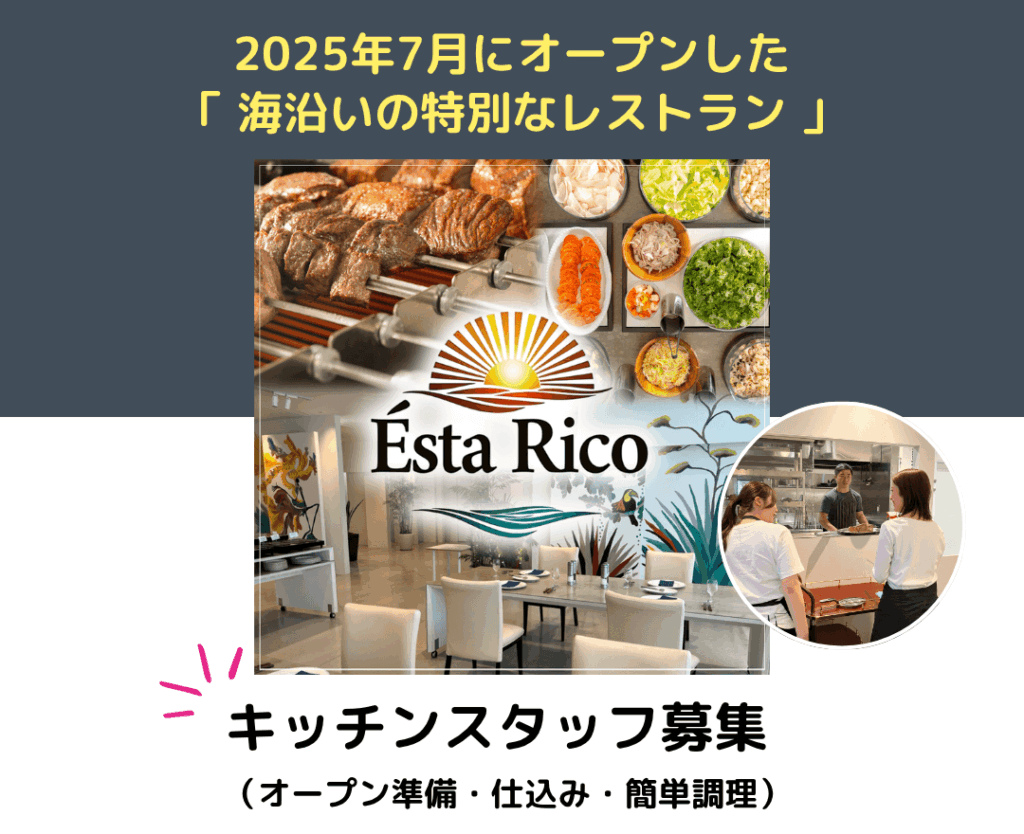 【2025年7月オープン】海沿いの特別なレストランでキッチンスタッフ募集🍴『Esta Rico(エスタリコ)』