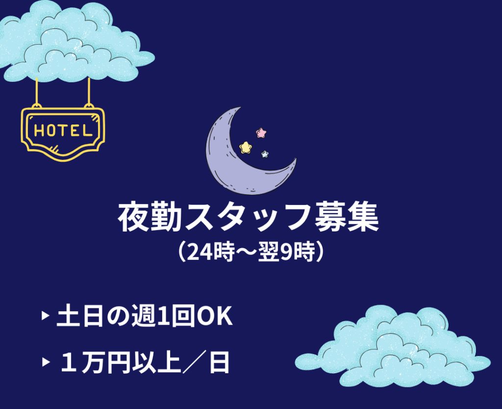 夜の時間を活かして、こつこつ働けるお仕事です。君津中央病院の近くにあるホテルで、24時~翌9時勤務のフロントスタッフを募集中!1回勤務で1万円以上稼げるのも魅力…