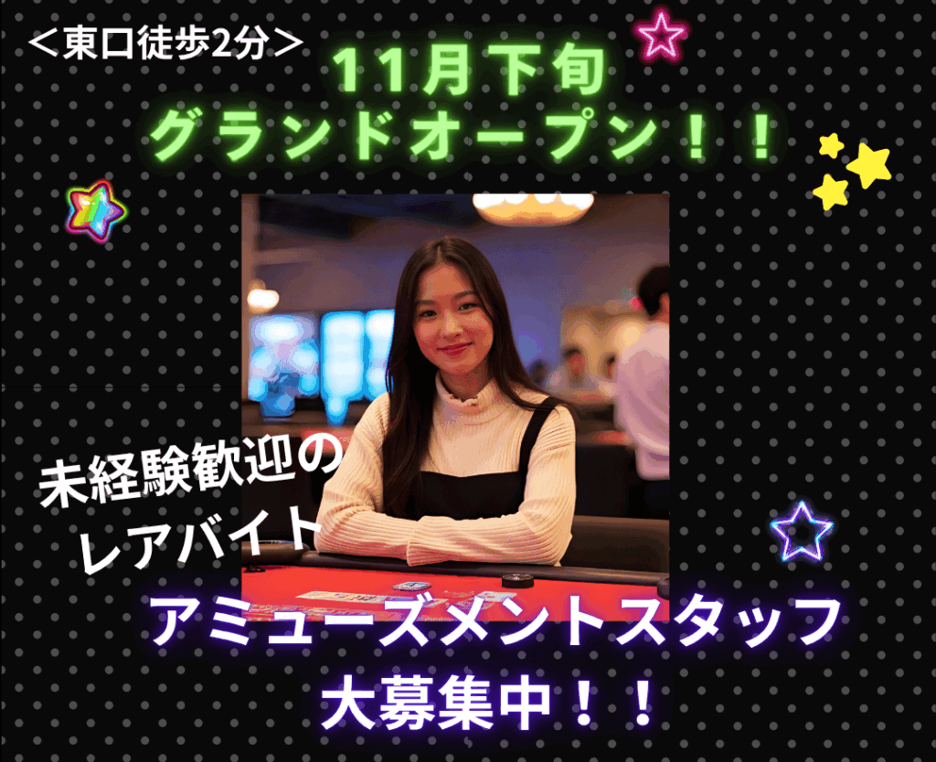 グランドリニューアルした「VEGAS BANK」でスタッフ募集!2024年12月にリニューアルしたばかりの新店舗。平日昼帯で働ける主婦さん、大歓迎です✨ おすすめポイント…