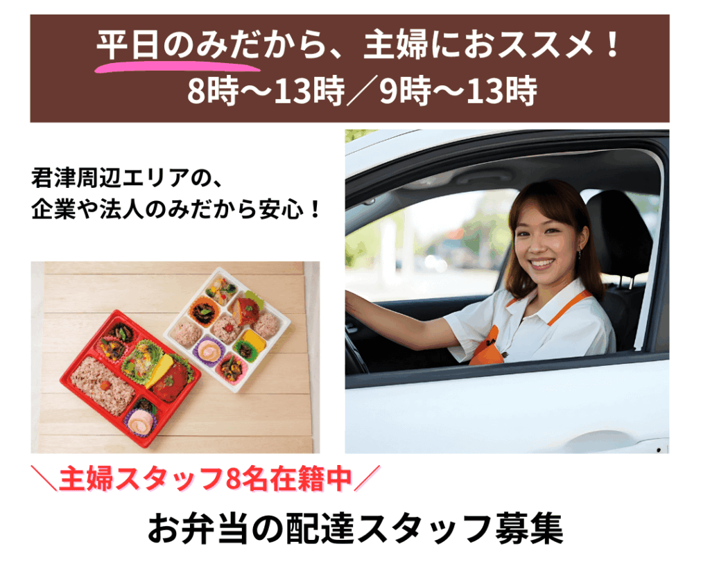 平日のみ!!朝~13時で主婦にオススメ!「お弁当の配達スタッフ募集」