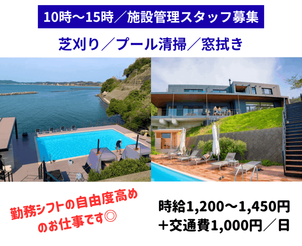 🌿 10時~15時の管理スタッフ募集!好待遇◎! 高級別荘『富津ヴィラ(Futtu villa)』