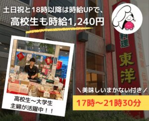 10:30~15:00の洗い場スタッフ募集!もくもく作業が好きな方歓迎!「中国料理 東洋」